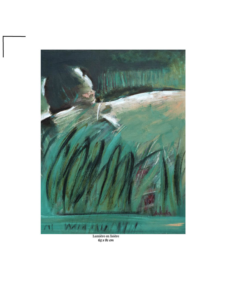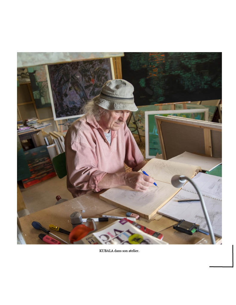 Au travers de ces œuvres, KUBALA nous transporte vers un nouveau récit, vers des cultures qui se croisent et s’enrichissent. Ses couleurs tantôt lisses, tantôt rugueuses, vivent, vibrent et s’expriment en silence. Le travail des strates de couleurs, des transparences et de la superposition devient le reflet de l’artiste qui cherche à rendre visible une image intérieure. L’effet diffus de vibrations silencieuses et lumineuses est une invitation à une déambulation rêveuse, aux sensations, aux émotions éprouvées passées ou à venir, pour n’en garder que l’essentiel. Au son sourd d’un pinceau vecteur de fluides colorés, natures et figures se réveillent en écho et s’illuminent sous les couleurs des plus ombragées aux plus lumineuses. C’est comme raconter ces petits riens qui nous prennent par la main et en somme, nous montrent ce que nous sommes.