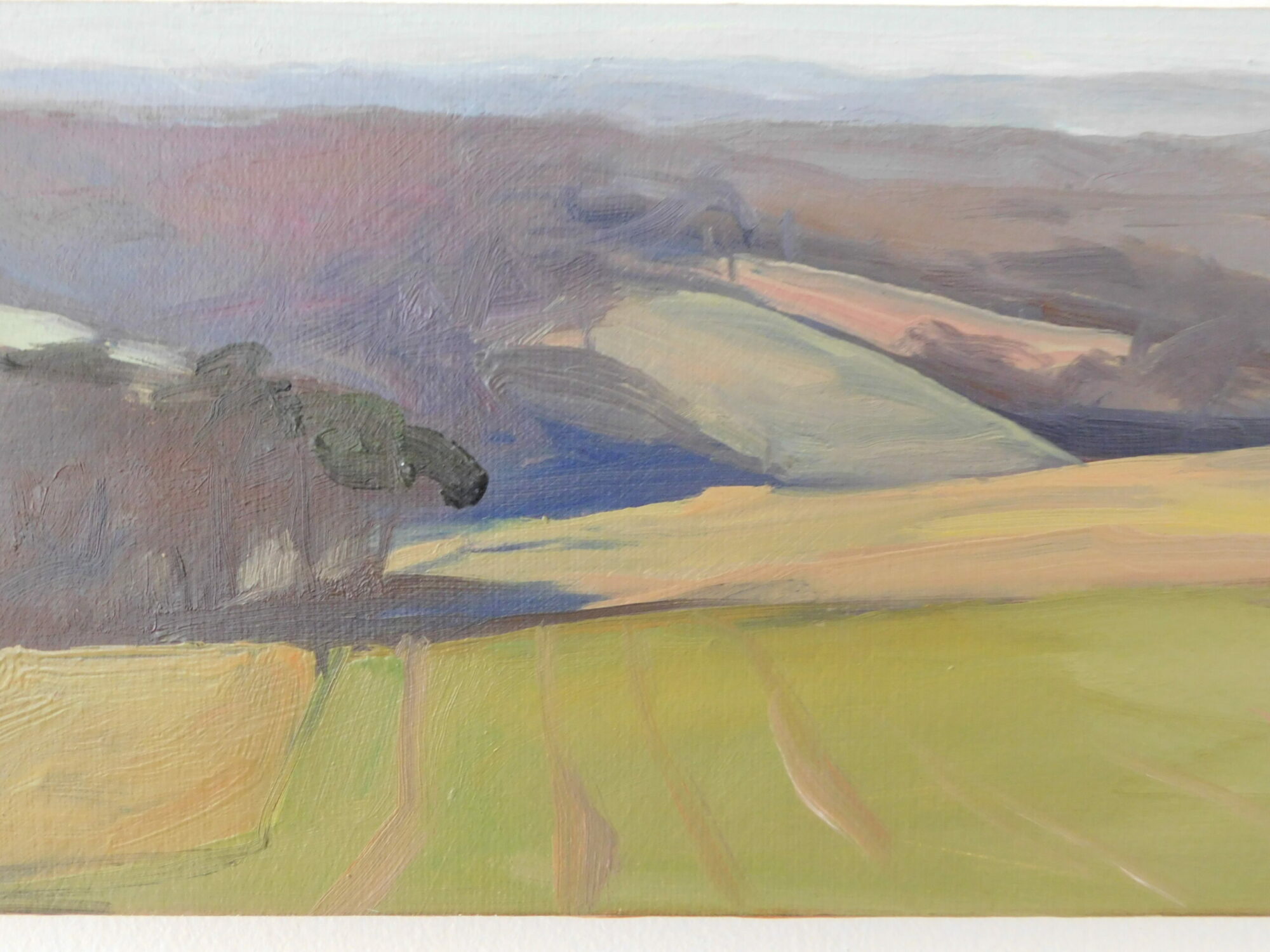Valérie de Sarrieu identifie et suggère un environnement dans une tradition picturale mais dont le contour est plus vaste. L’artiste ne cherche pas à domestiquer la nature par le trait, elle concède le sentiment d’une nature délivrée. Ainsi elle révèle avec la même sensibilité esthétique, le sublime d’une nature environnante que celui d’un paysage à la complexité urbaine.